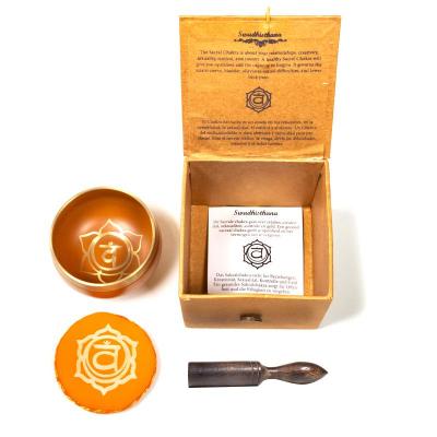 Bol chantant COULEUR CHAKRA SACRE, livré avec un bâtonnet et un coussin. dans une jolie boîte-cadeau...