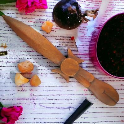 Athamé Déesse en bois, sculptée à la main