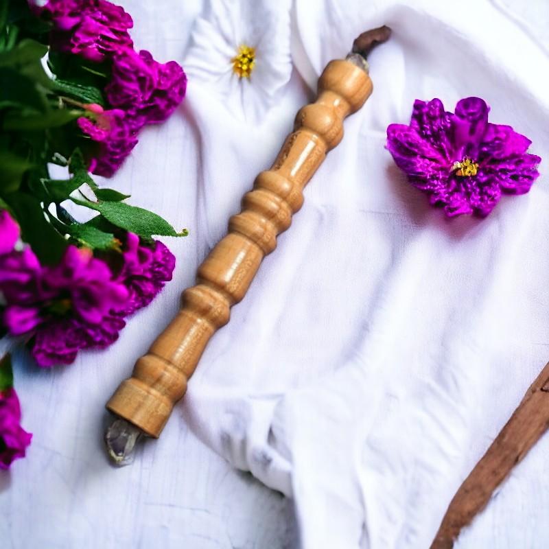 Elle joue un rôle crucial dans la promotion de la méditation, la concentration et l'élévation spirituelle. Cette pierre précieuse a également le pouvoir d'apaiser les émotions négatives telles que la colère, la peur, les inquiétudes et la tristesse. La combinaison de ces éléments fait de la baguette un outil exceptionnel pour le soin et l'harmonie intérieure.