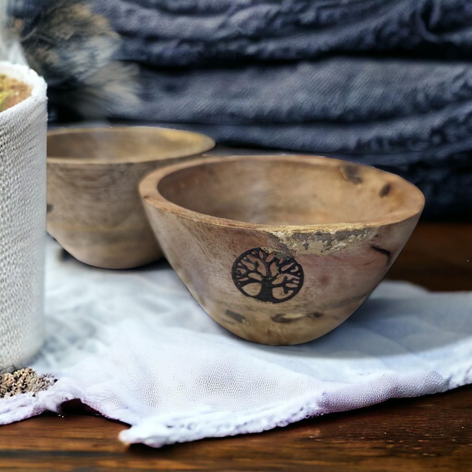Chaque détail gravé dans le bois raconte une histoire de résilience et d'unité, faisant de ce bol un objet essentiel pour enrichir les rituels et célébrations spirituelles, tout en embellissant l'espace sacré de l'autel.