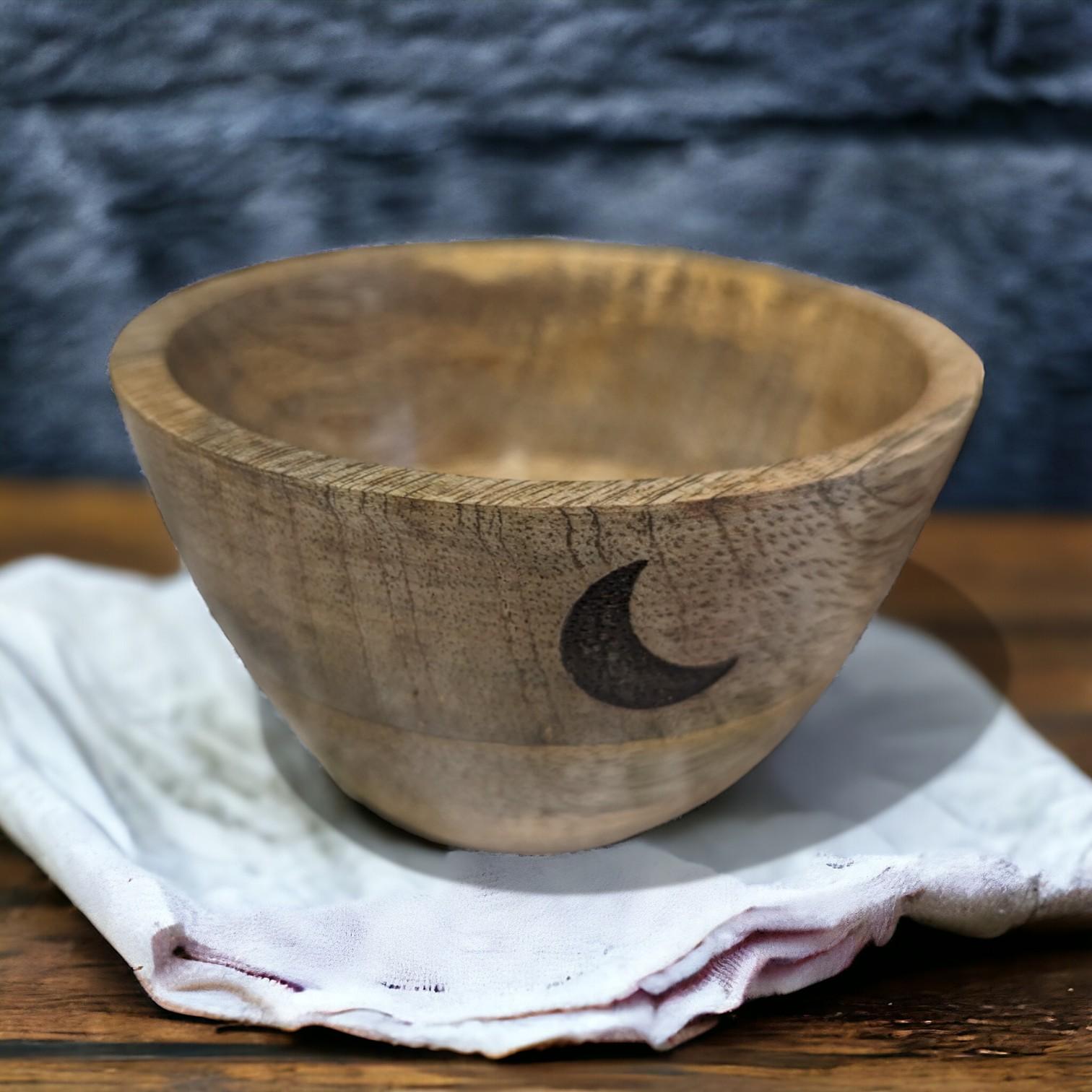 La lune, gravée avec soin sur le bois, parle d'une relation intime avec le cosmos, rappelant les rythmes naturels de la vie et l'influence céleste sur notre existence. Elle symbolise également la féminité, l'intuition et le changement, des aspects essentiels dans la pratique spirituelle. Ce bol devient alors un pont entre le ciel et la terre, le divin et le mortel.