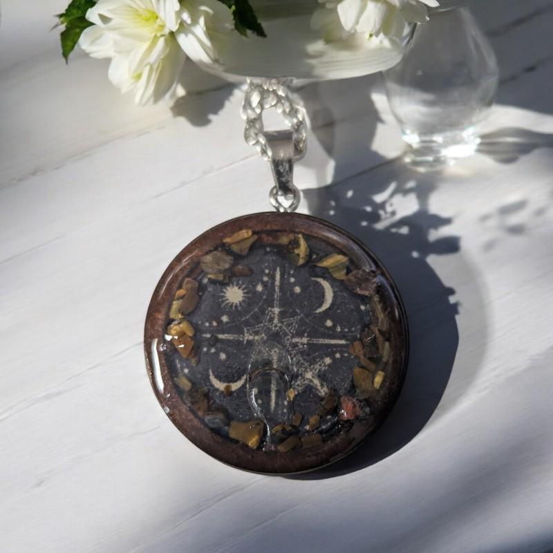 Ce médaillon, en réunissant ces symboles, devient un puissant talisman d'harmonie, de protection et de croissance spirituelle.