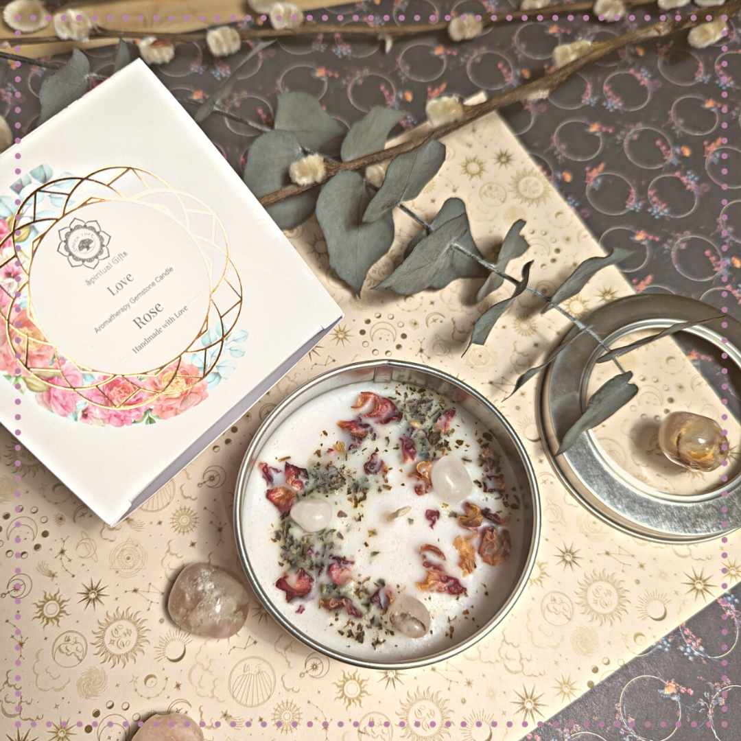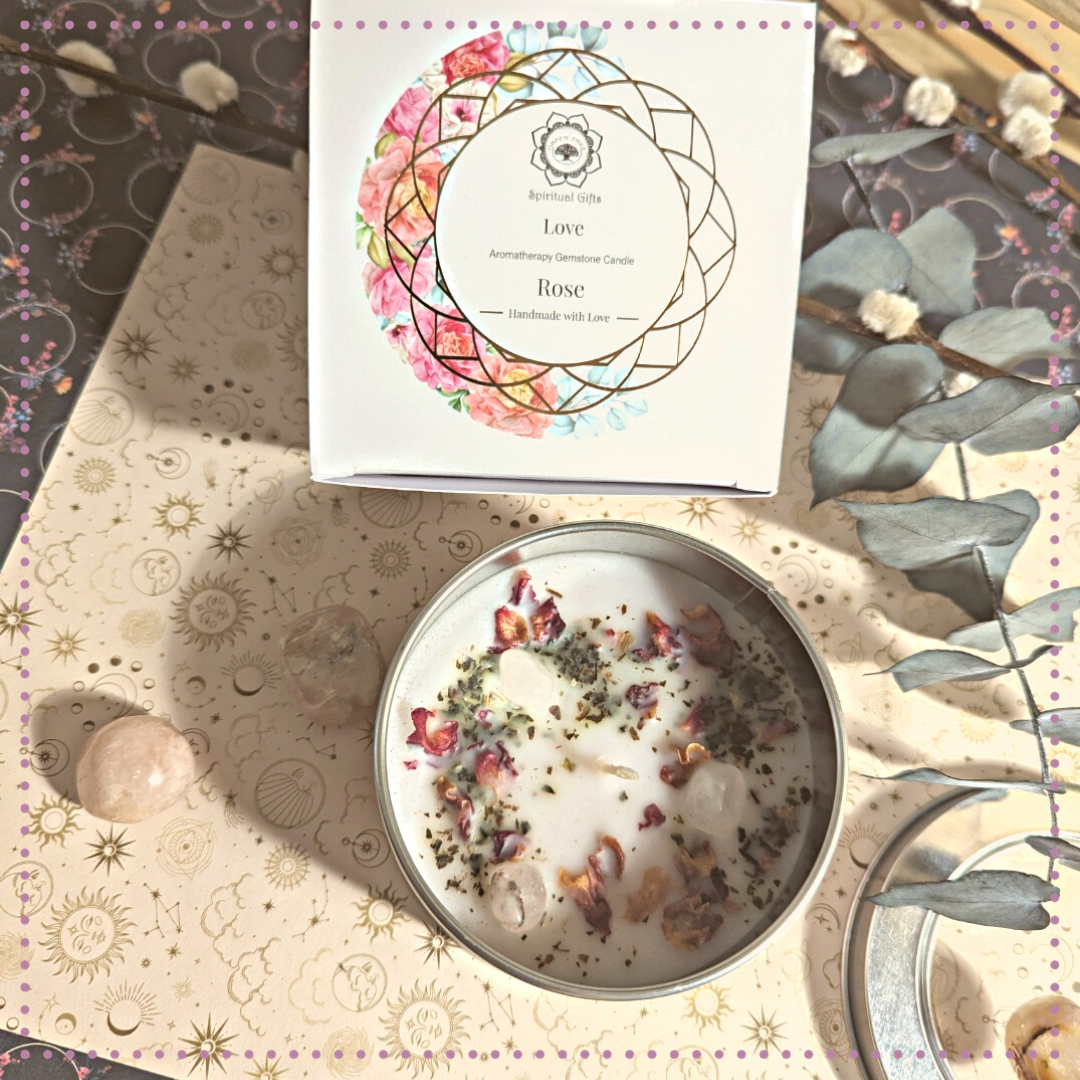 Les bougies d'aromathérapie à la rose, enrichies d'un quartz rose, promettent détente et harmonie. Le quartz, pierre d'amour, amplifie l'effet apaisant des effluves floraux. Allumer cette bougie crée une ambiance sereine, transformant chaque espace en un havre de paix pour une relaxation profonde et méditative.