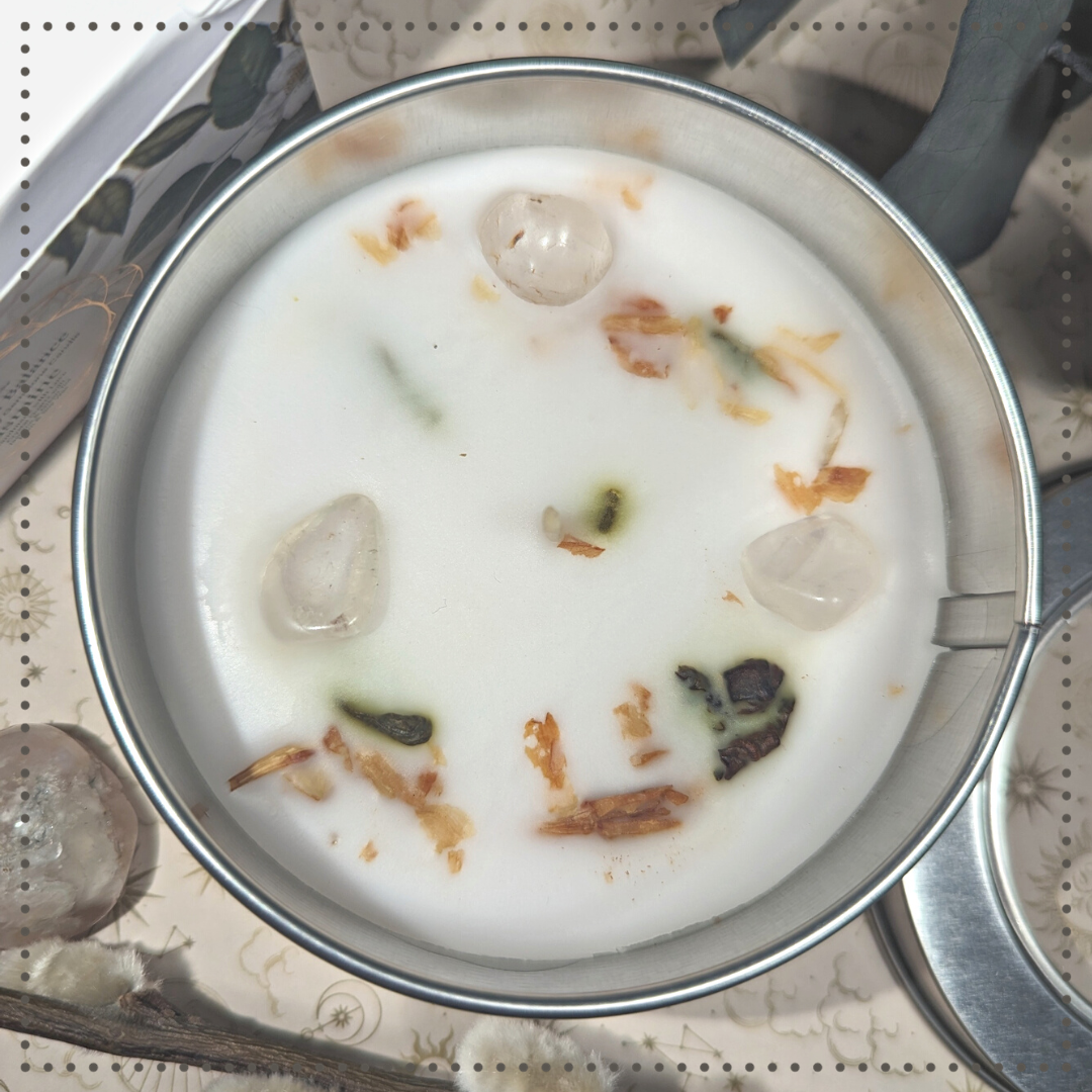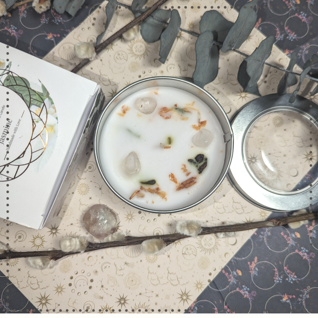 La bougie "Équilibre Spirituel" mêle le parfum apaisant du jasmin à la pureté d'un cristal de roche. Conçue pour l'aromathérapie, elle promet détente et harmonie. Allumez-la pour purifier l'espace et équilibrer l'esprit, créant une oasis de sérénité dans le tumulte quotidien. Un véritable sanctuaire olfactif.