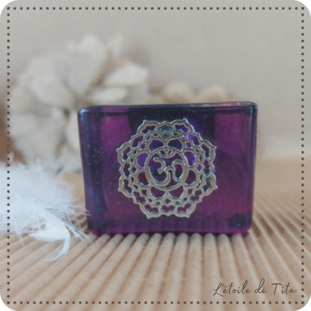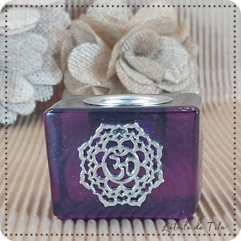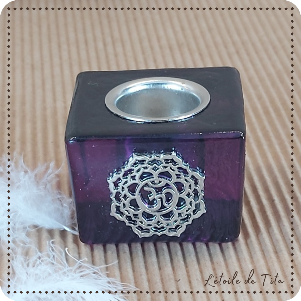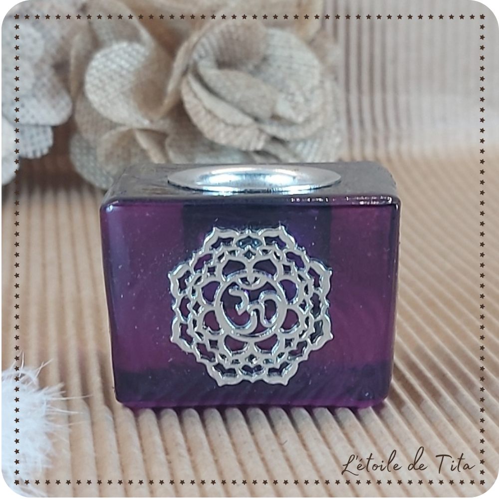 Travaillez votre connexion avec ce joli bougeoir violet correspondant au chakra couronne.