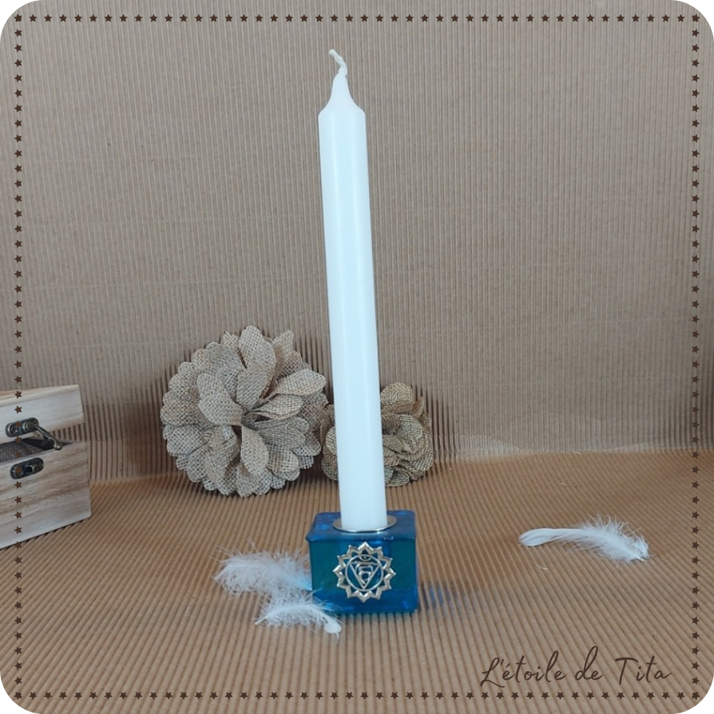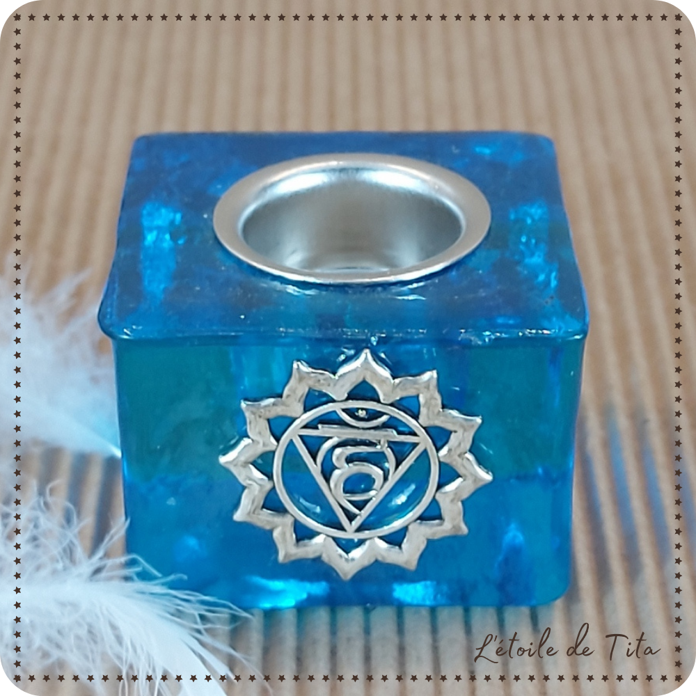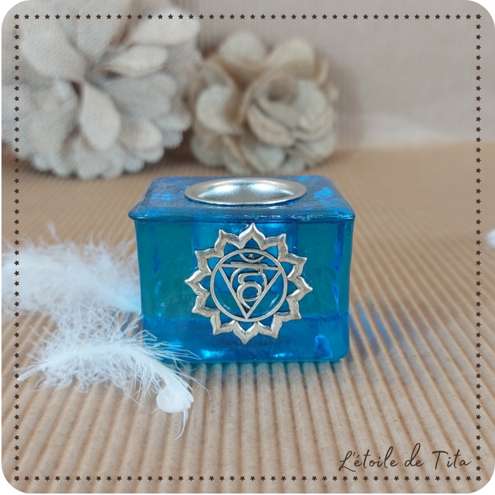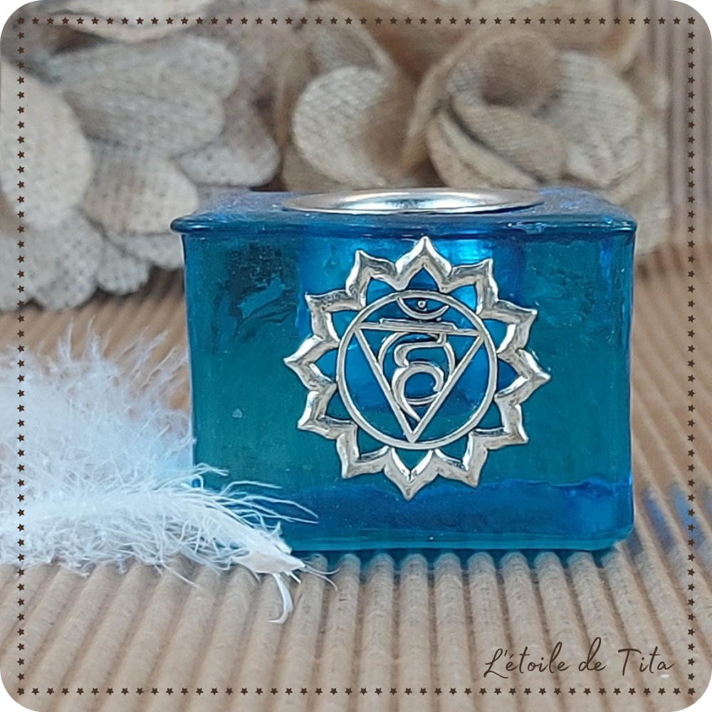 Travaillez votre communication positive avec ce joli bougeoir bleu correspondant au chakra de la gorge.