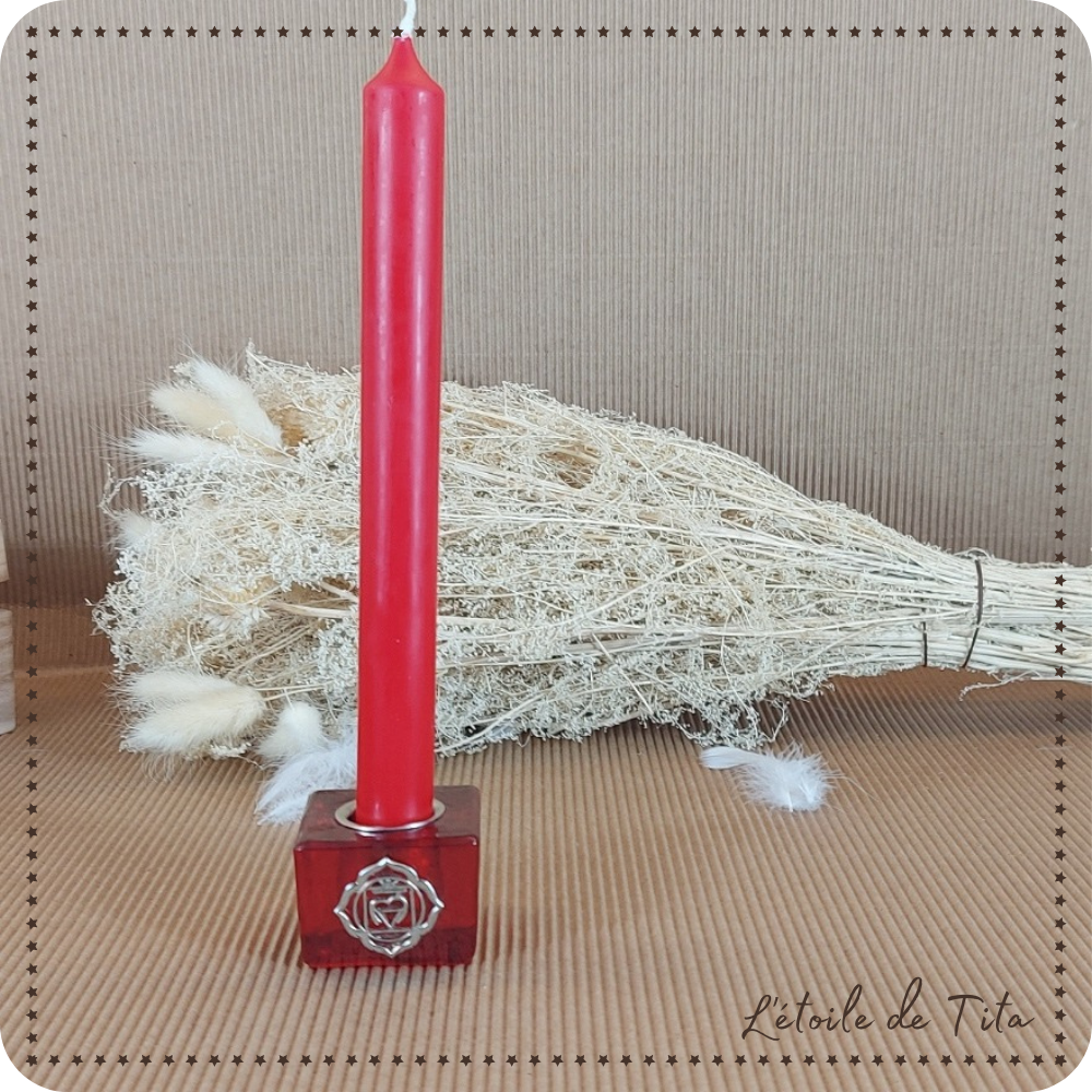 Travaillez votre ancrage avec ce joli bougeoir rouge vif correspondant au chakra racine.