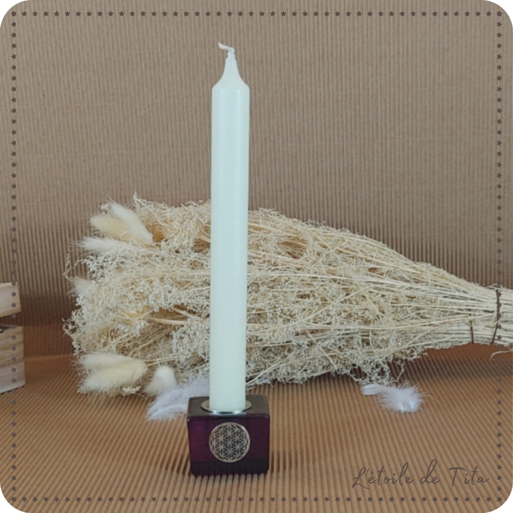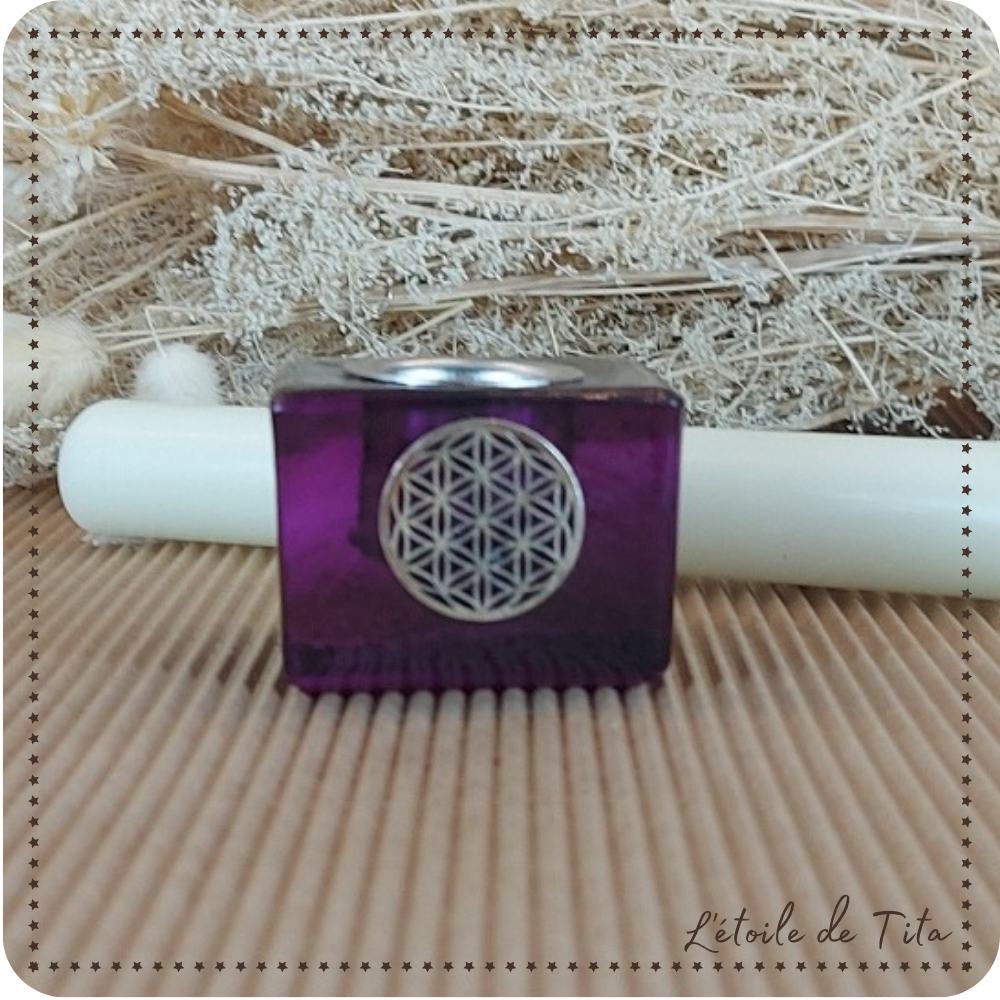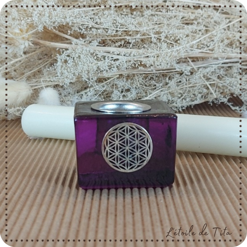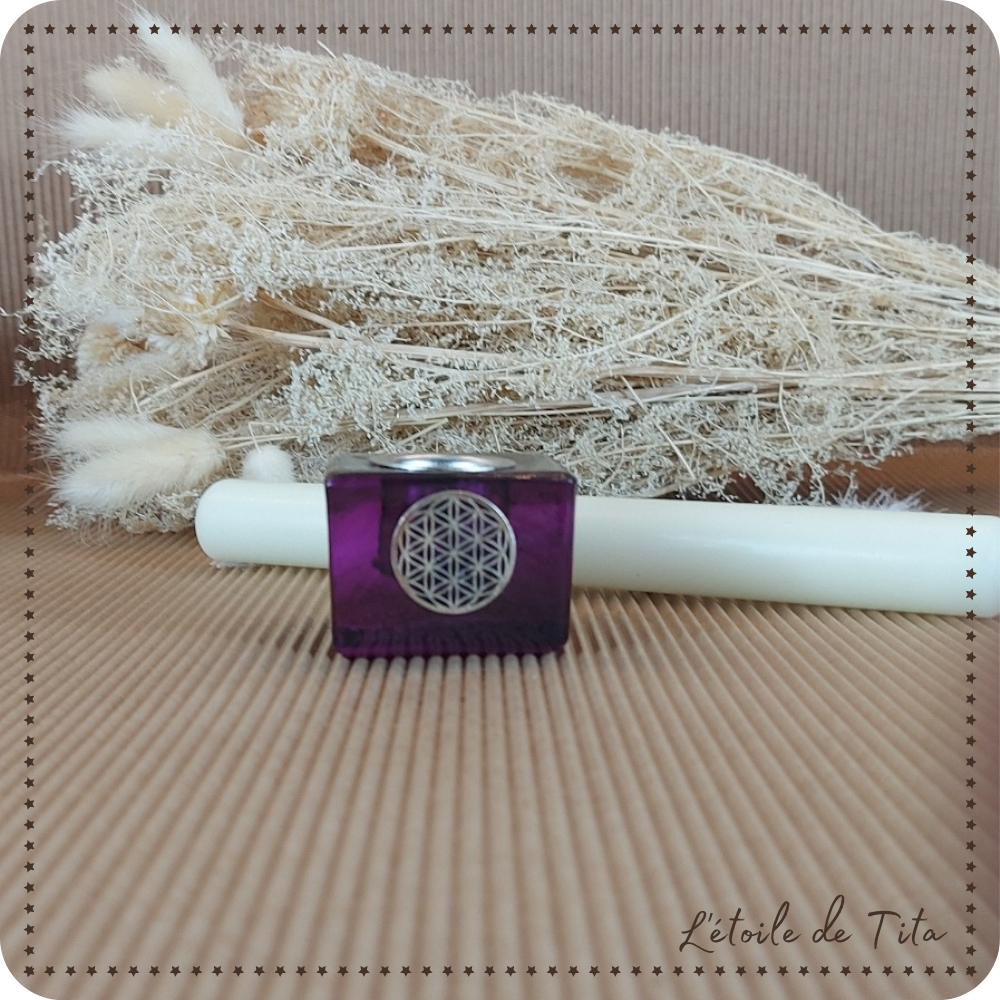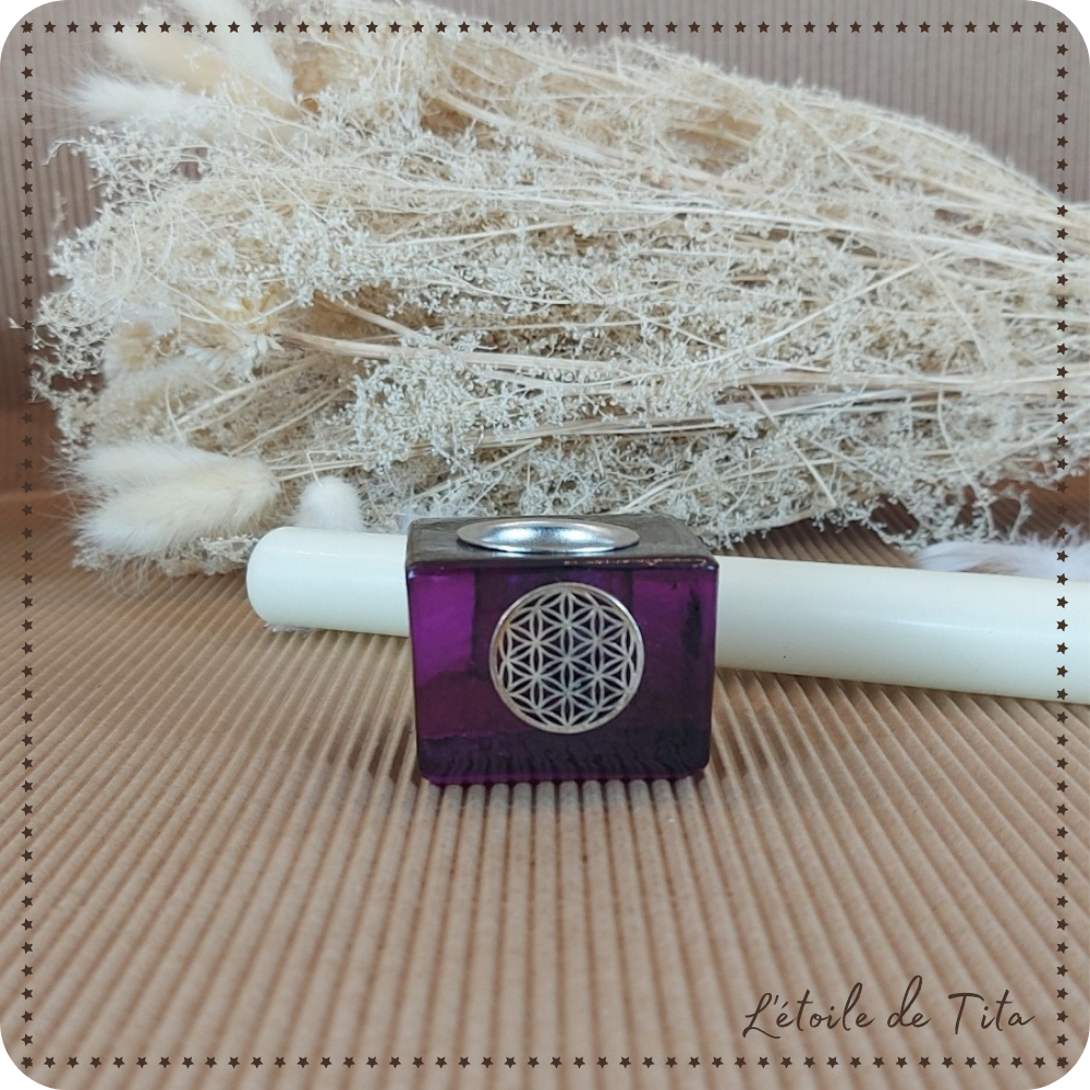 Bougeoir cube avec fleur de vie violet