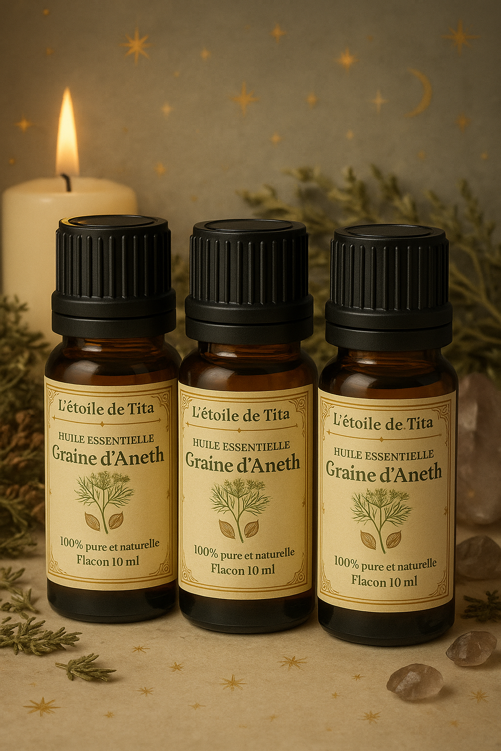 Puissante et méconnue, l’huile essentielle d’aneth purifie les énergies, protège contre les influences négatives et favorise la clarté mentale. Idéale pour renforcer l’intuition, attirer l’abondance et guider les décisions spirituelles.