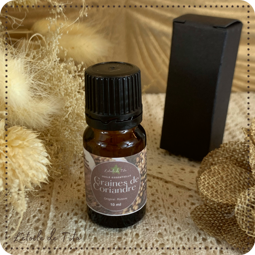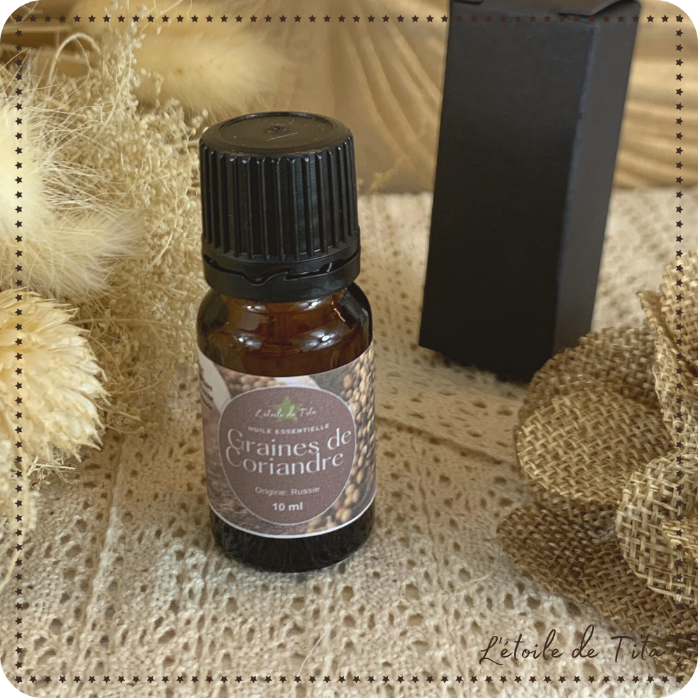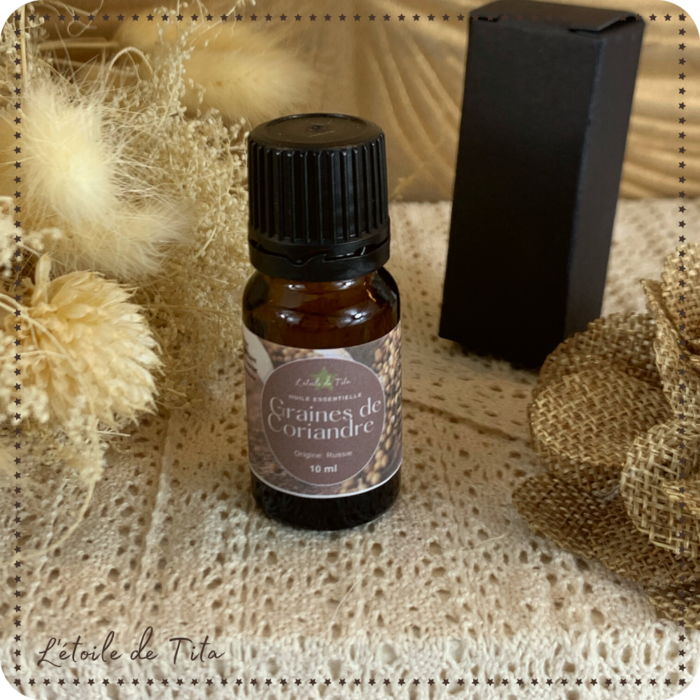 L'huile essentielle de Coriandre est traditionnellement réputée pour favoriser la digestion. Tonique et purifiante, l'huile essentielle de Coriandre s'utilise comme stimulant de la mémoire et pour lutter contre les fatigues physiques et mentales. Puissante, l'huile essentielle de Coriandre apporte une senteur inégalée à vos plats.
