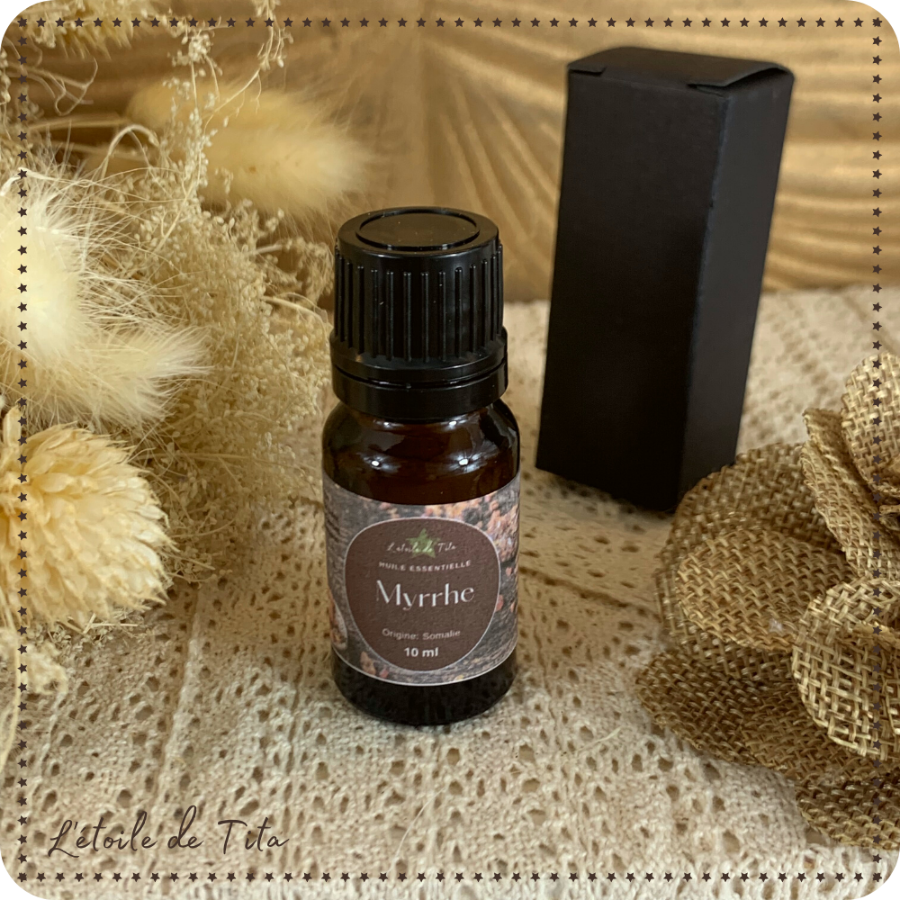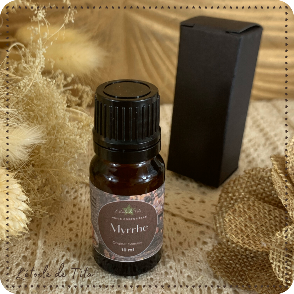 Mystique, l'huile essentielle de Myrrhe se distingue par sa puissante action calmante et réconfortante sur l'âme et l'esprit. L'huile essentielle de Myrrhe est connue depuis l'Antiquité pour ses propriétés régénérantes et permet de réaliser des soins pour peaux sensibilisées. Purifiante, l'huile essentielle de Myrrhe s'emploie à merveille dans les préparations pour peaux à problèmes.