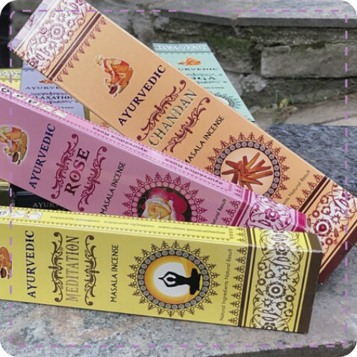 Fabriqués suivant la méthode “ masala ”, ces encens ayurvédiques “ Premium ” sont un savoureux mélange unique d’herbes rares, de fleurs, de miel , de résines et d’huiles.
