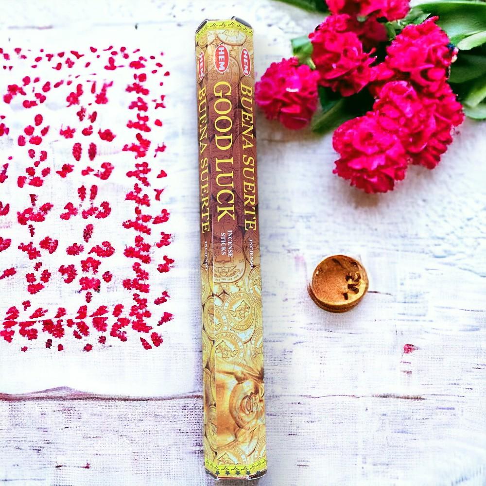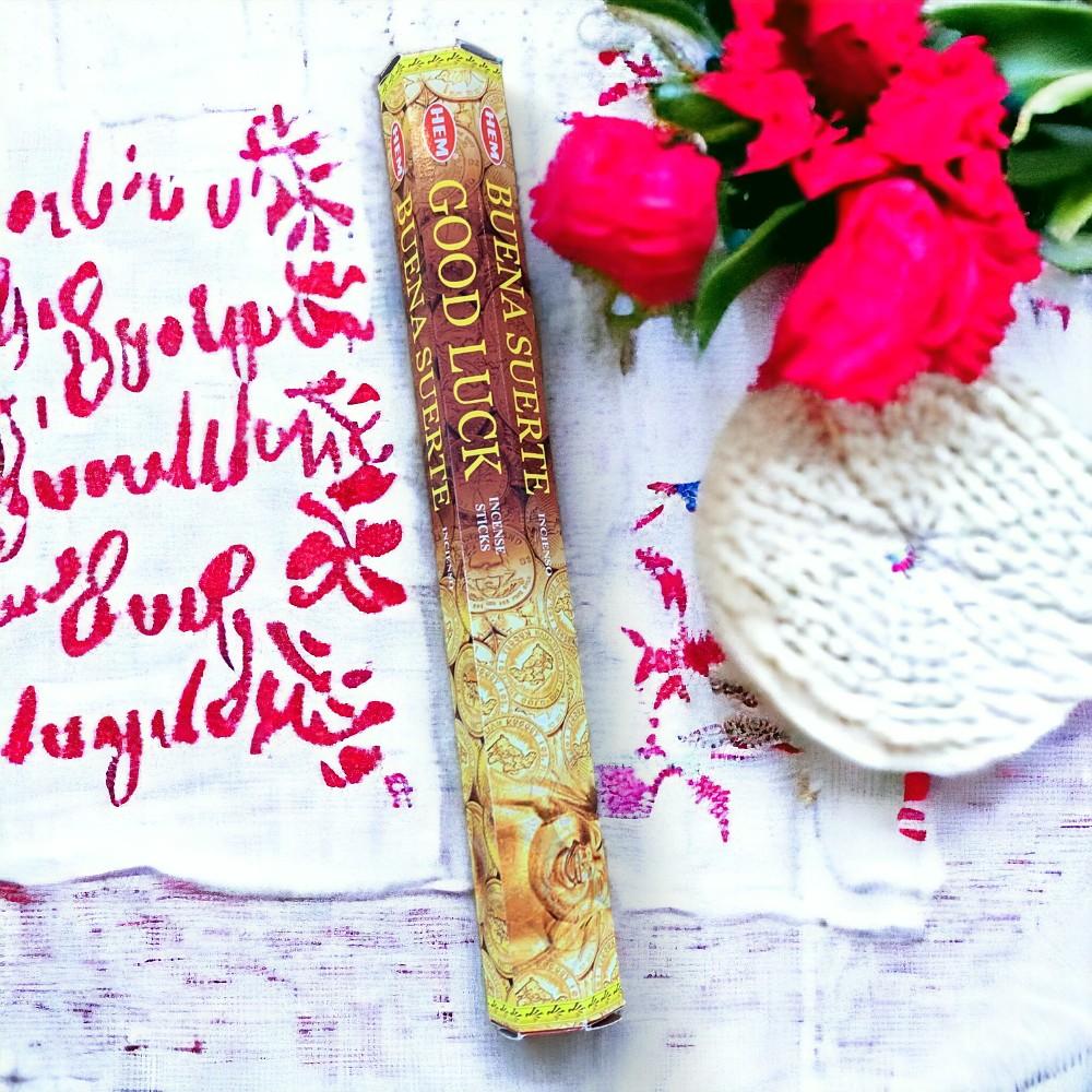 Son parfum mystique éveille les sens et invite à la positivité. Que ce soit pour une méditation profonde, une relaxation bien méritée ou simplement pour créer une atmosphère chaleureuse, l'encens "Bonne Chance" est un allié précieux au quotidien. Laissez-vous emporter par sa magie et ouvrez-vous aux possibilités infinies.