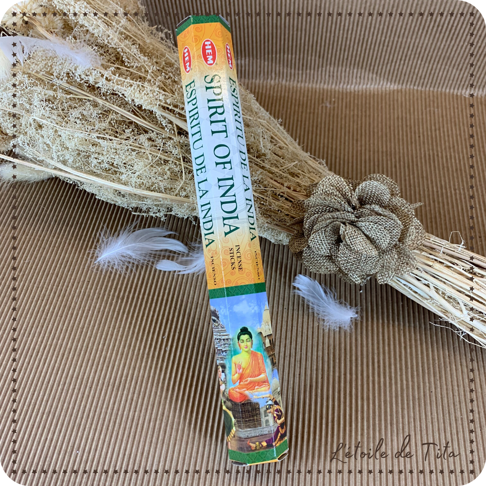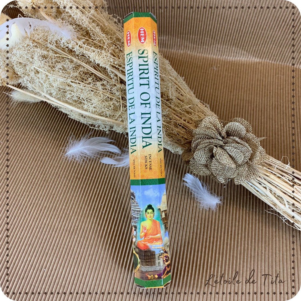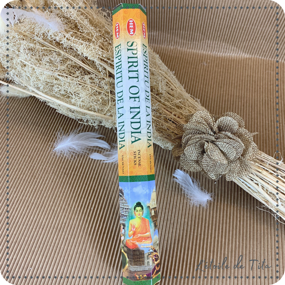 L'encens SPIRIT OF INDIA (esprit de l'inde) a un parfum qui vous transporte en Inde et crée une atmosphère zen propice à la méditation.