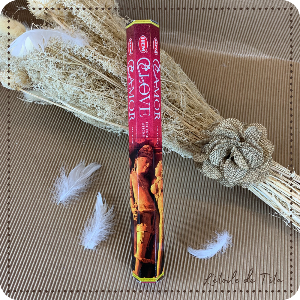 Pour attirer l'amour. Marque: HEM Provenance: Inde Boîte de 20 bâtonnets Durée...2,50€ TTC