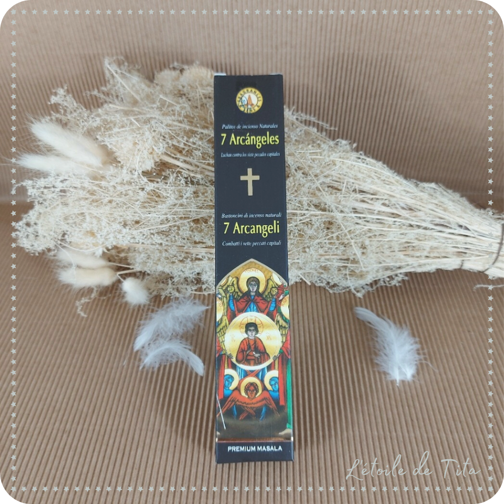 L'encens des 7 Archanges est un solide Allié qui peut agir dans de nombreuses situations: Michel ou Michael : Protection et Courage - Jophiel : Éclaireur - Samuel ou Chamuel : Réconfort, protection et clarté d'Esprit - Gabriel : Amour et sérénité - Raphaël : Guérison, paix - Uriel : Enseignements et intuitions - Zadkiel : Bienveillance, compassion et stabilité Émotionnelle -