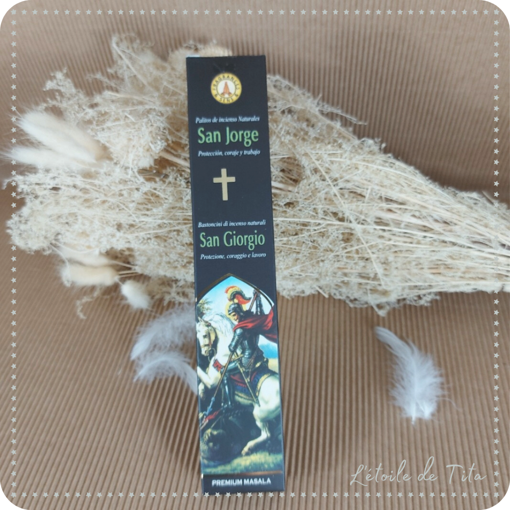 L'encens Saint Georges sera utilisé pour retrouver courage et force face à l'adversité. Les fumigations de l'encens Saint Georges vous permettront de provoquer la passion et le désir sexuel. Protecteur, Saint Georges vous apportera sa bienveillance dans le milieu social et dans votre travail.