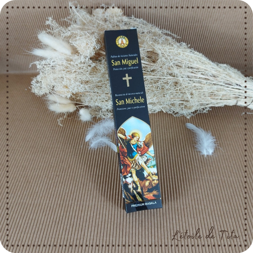 L’encens Saint Michel se présente sous la forme de bâtonnet, la plus répandue, ou de poudre granuleuse. Dans ce cas, il faut le faire brûler sur un charbon bien ardent. A l’image de l’archange qui lui vaut son nom, l’encens Saint Michel se révèle très efficace pour tout ce qui touche à la protection, en particulier lorsqu’on le consume au cours d’un rituel. Il est capable de purifier la maison en la débarrassant des esprits malins, et d’apporter la paix et l’harmonie dans votre foyer.
