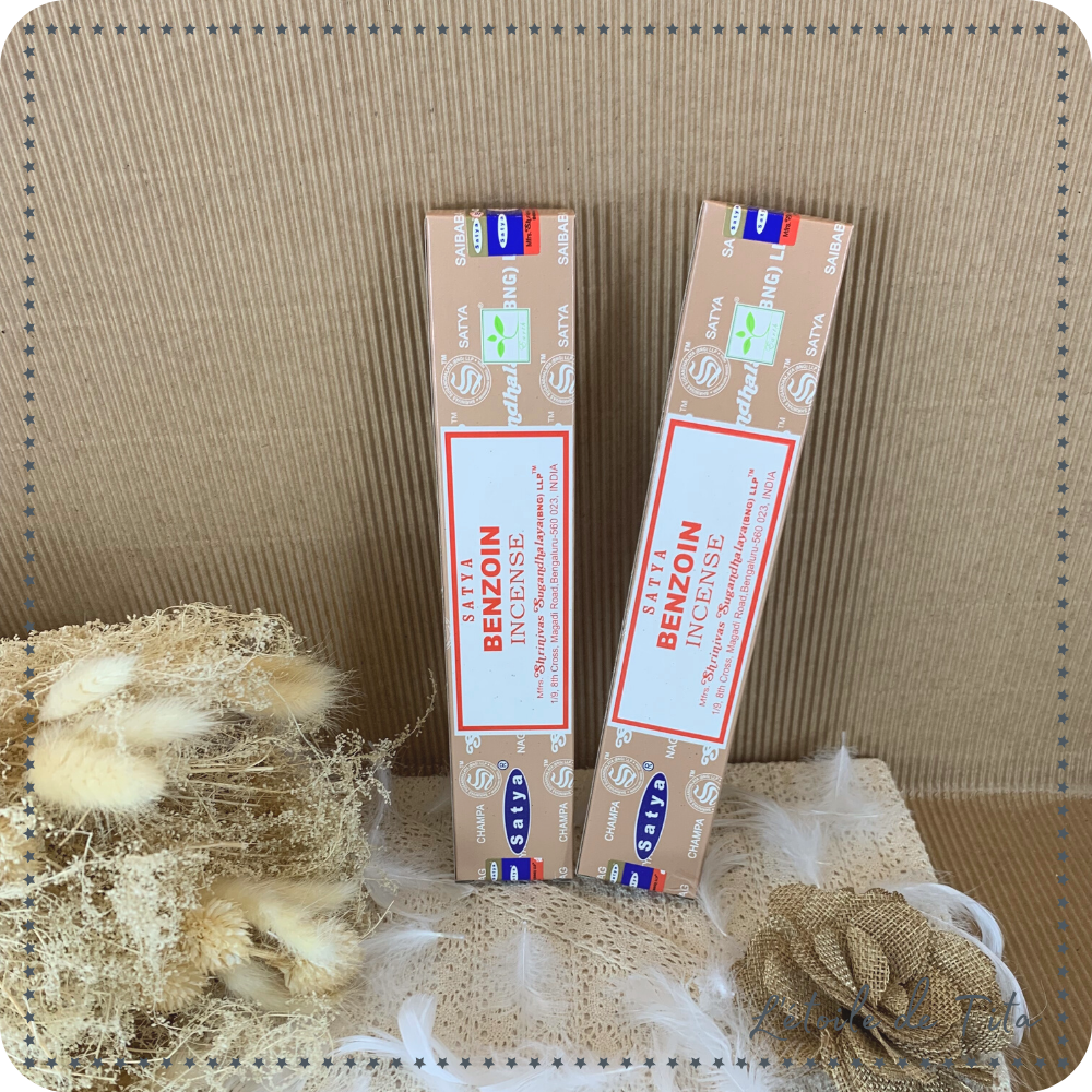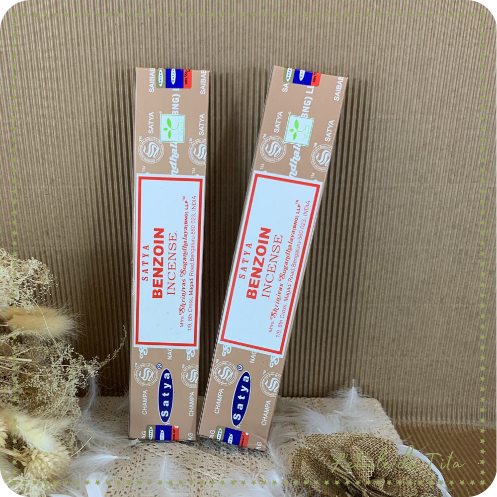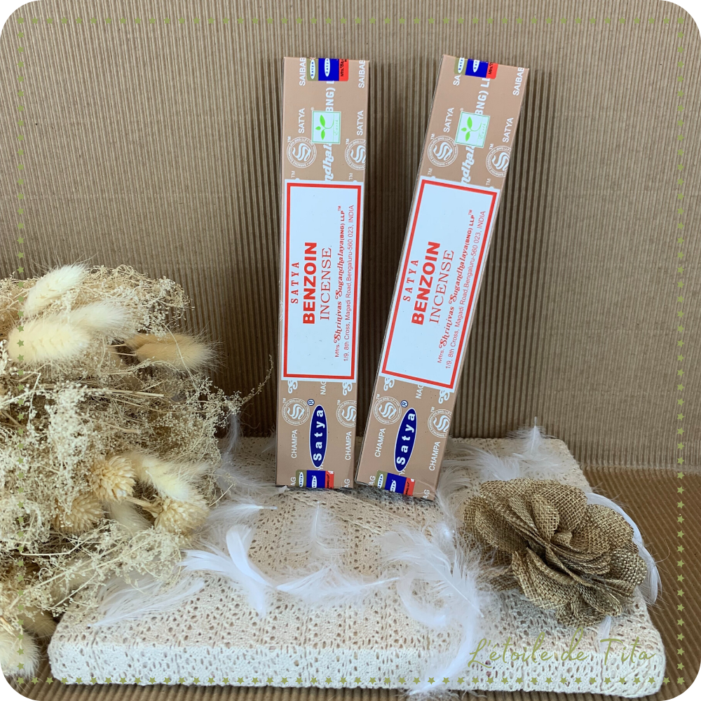 Un encens indien au parfum épicé, aromatique. Issu de la grande famille des encens indiens Satya Sai baba, l'encens benjoin est idéal pour chasser les mauvaises odeurs et énergies tout en aidant à apaiser les tensions nerveuses. Son parfum suave, sensuel, vanillé, aux notes d'amandes caramélisées facilite la relaxation et la méditation.