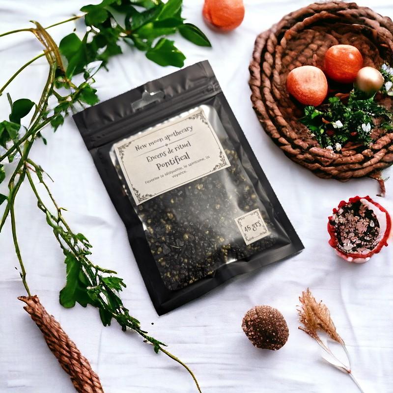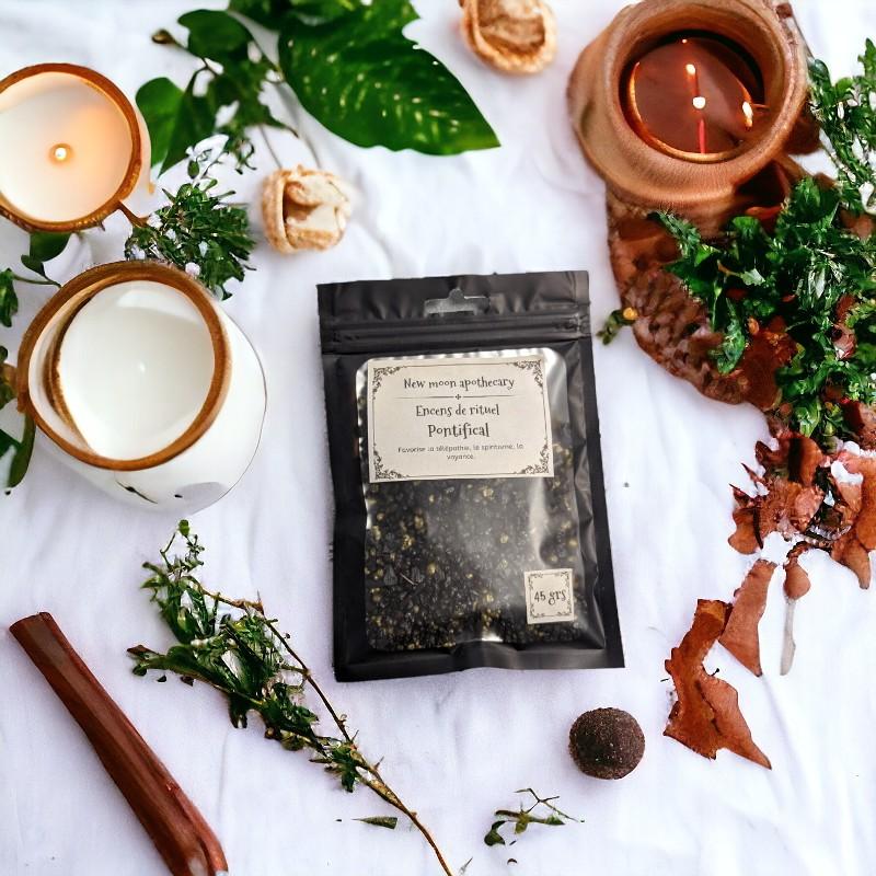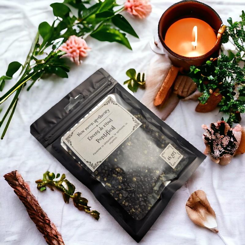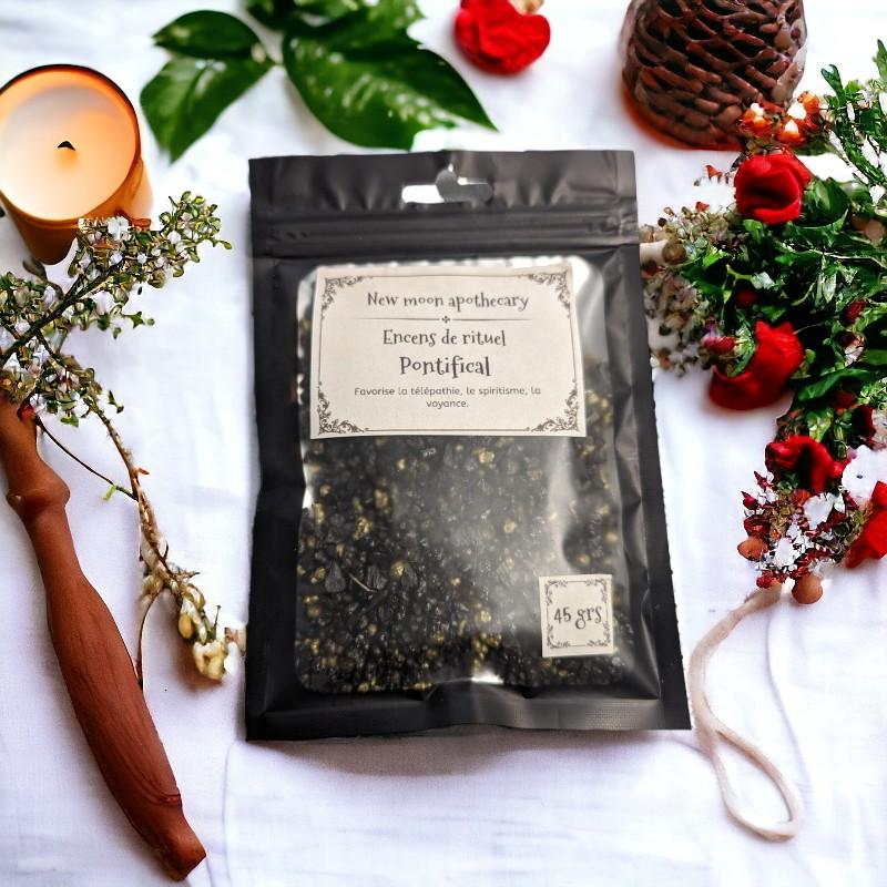 L'encens pontifical, utilisé en rituels, favorise télépathie, spiritisme, et voyance, notamment pour communiquer avec les défunts.