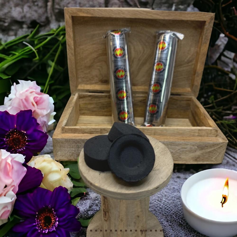 Découvrez nos rouleaux de 10 tablettes de charbon à brûler, parfaits pour vos encens résine, cônes et herbes magiques ! Faciles à utiliser, ces tablettes garantissent une combustion lente et uniforme, libérant ainsi les arômes de vos ingrédients magiques préférés.