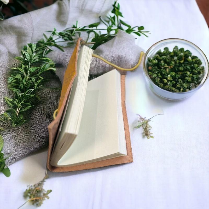 Compact par design, ce grimoire est conçu pour être un compagnon quotidien. Sa taille pratique permet de le transporter facilement dans une poche ou un sac, rendant possible la consignation de pensées, d'incantations magiques ou de notes importantes à tout instant. Cette accessibilité fait du mini grimoire un outil précieux pour ceux qui souhaitent capturer l'inspiration dès qu'elle surgit, sans sacrifier leur engagement envers un mode de vie durable.