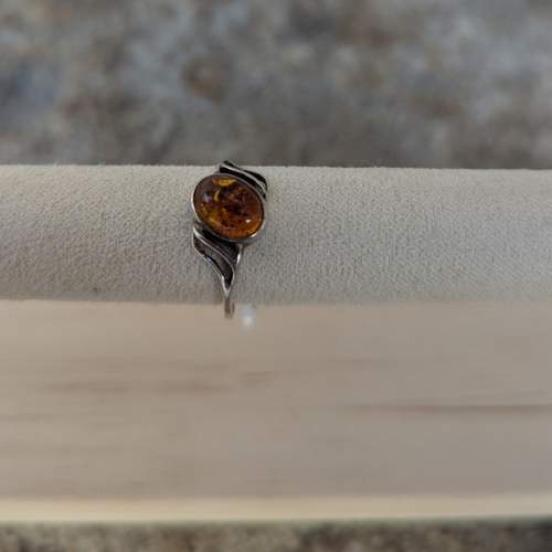 Bague en ambre et argent rhodié – Éclat solaire & protection ancestrale
