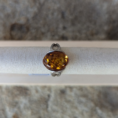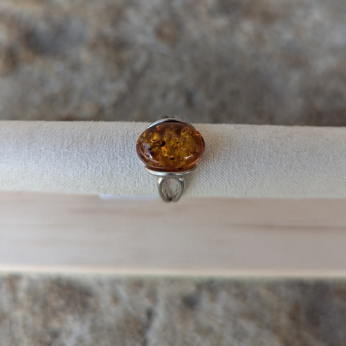 Bague ambre et argent rhodié