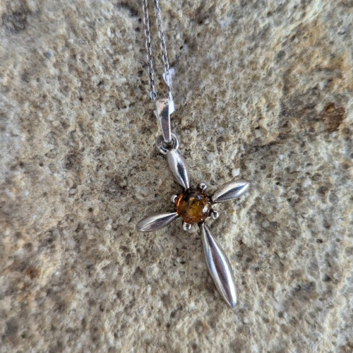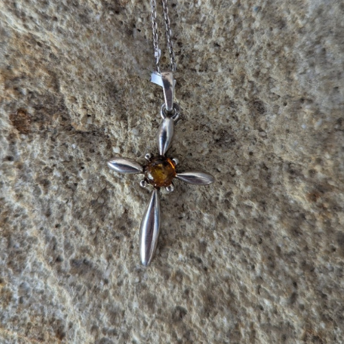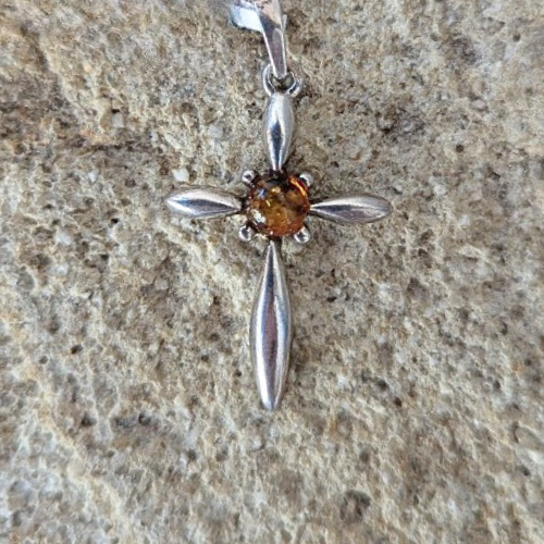 Pendentif en ambre et argent rhodié Croix