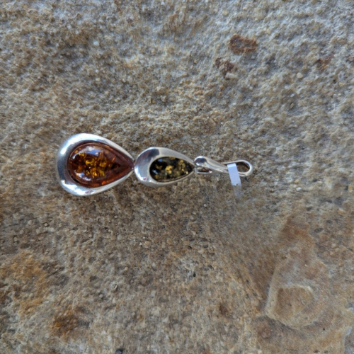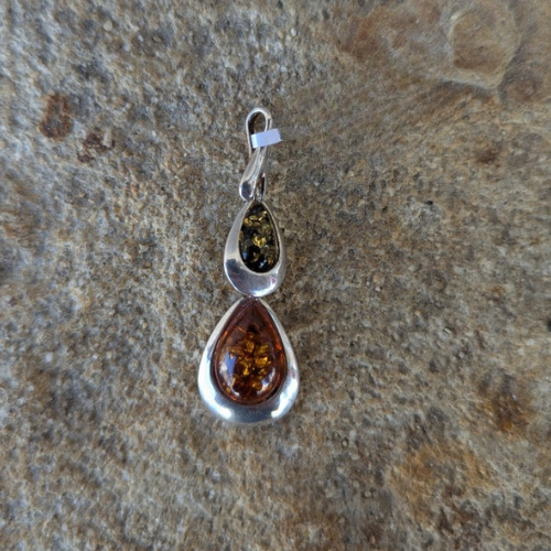 Pendentif en ambre et argent rhodié goutte