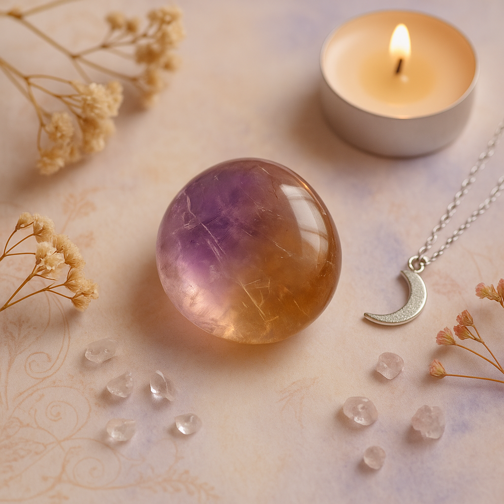 Sur le plan magique, l’amétrine est une pierre d’alchimie intérieure. Elle relie les polarités : lune et soleil, féminin et masculin, intuition et volonté. Elle est utilisée dans les rituels de transformation, d’équilibrage énergétique et de manifestation. C’est une alliée puissante pour celles et ceux qui souhaitent avancer avec sérénité tout en affirmant leur lumière.