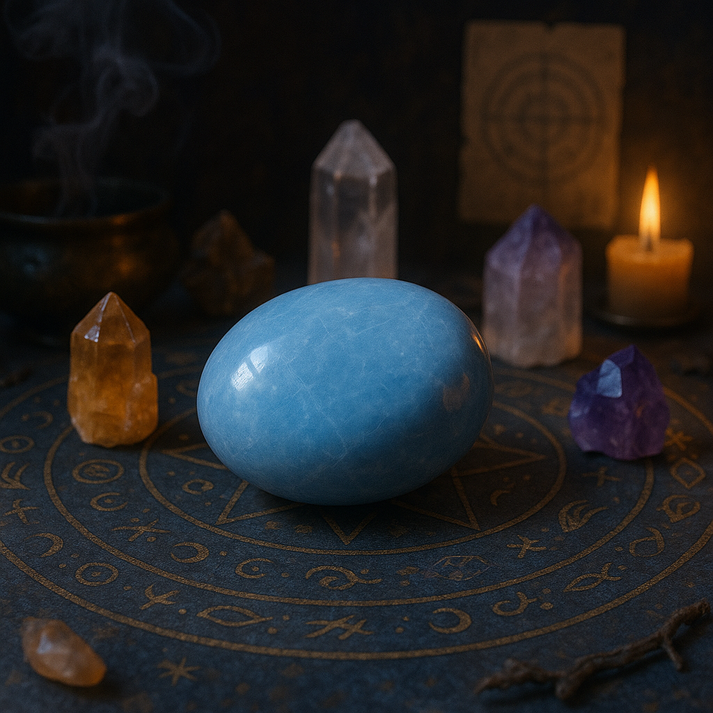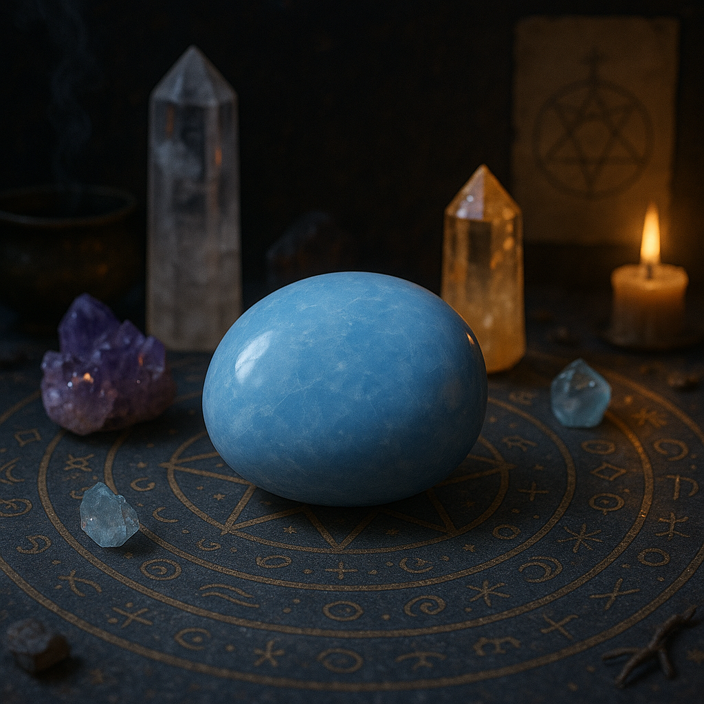 À garder dans une poche, sur l’autel ou dans un espace sacré, cette pierre roulée en angélite est un véritable talisman de paix, de foi et de lumière.