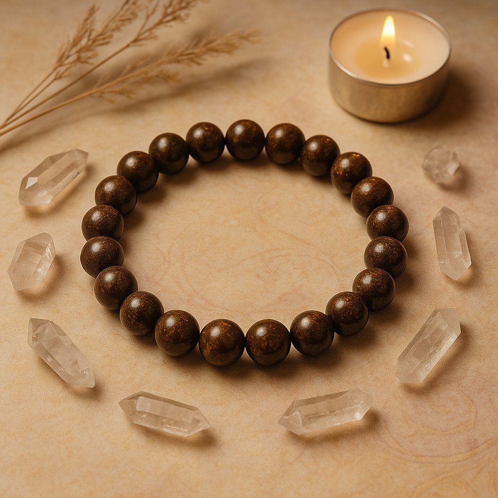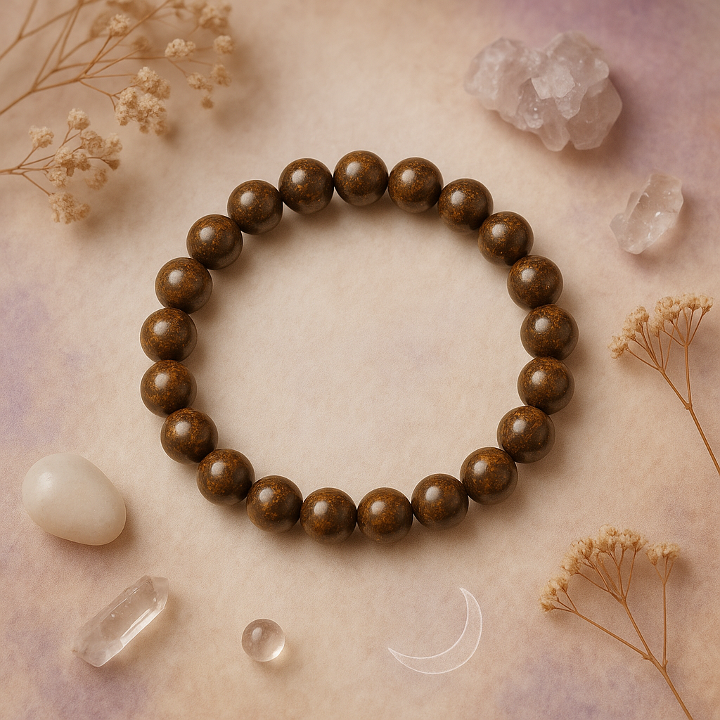 Bracelet en bronzite – Ancrage & protection douce :Composé de perles de 8 mm, ce bracelet en bronzite diffuse une énergie de calme, de force intérieure et de clarté mentale. Pierre d’ancrage et de protection, elle repousse les énergies négatives et aide à garder l’esprit centré. Un bijou discret et puissant pour avancer avec sérénité.