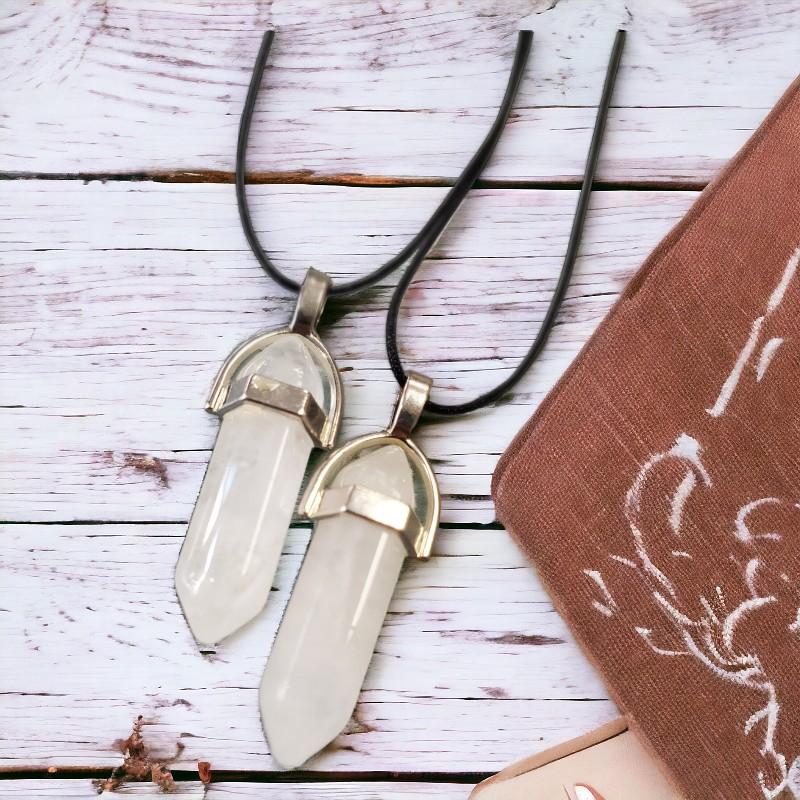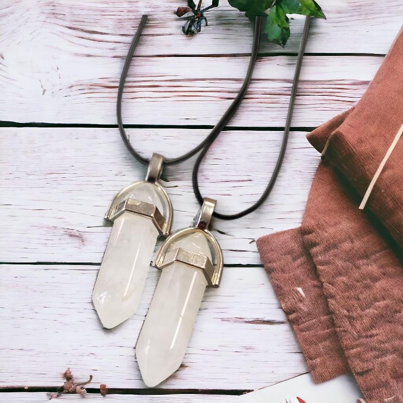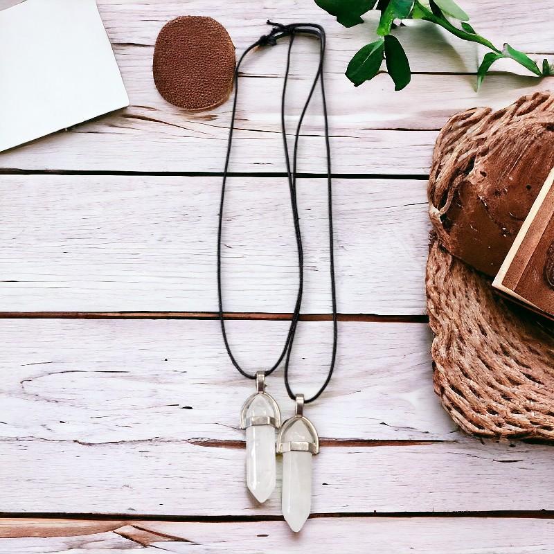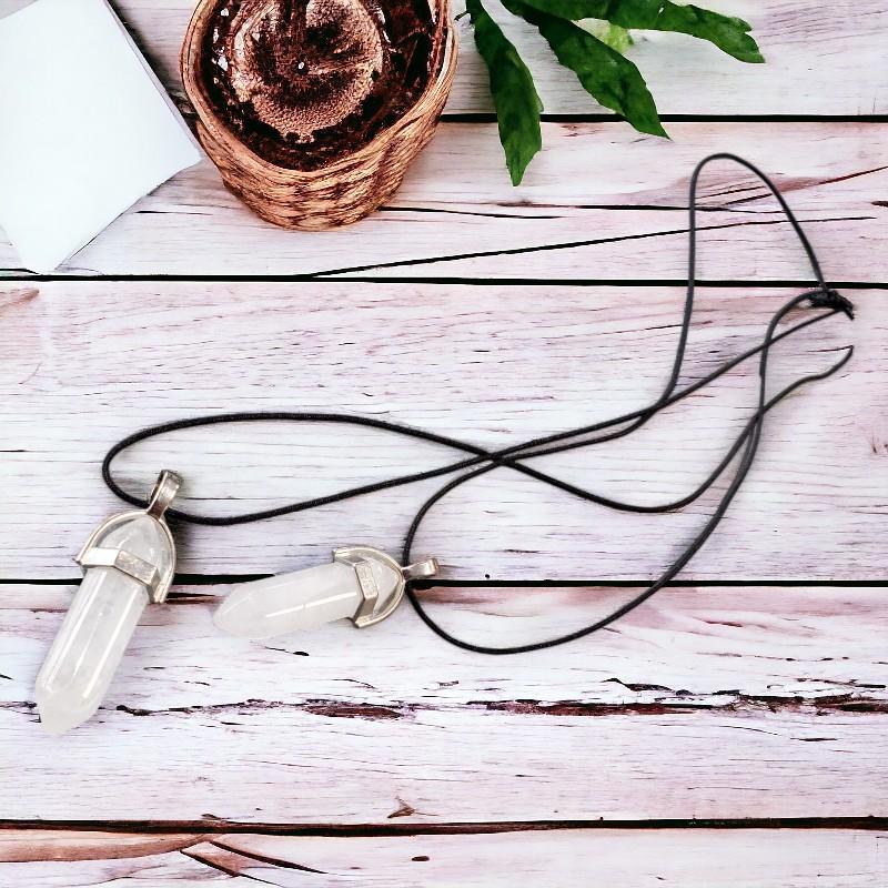 Pendentif biterminé en cristal de roche