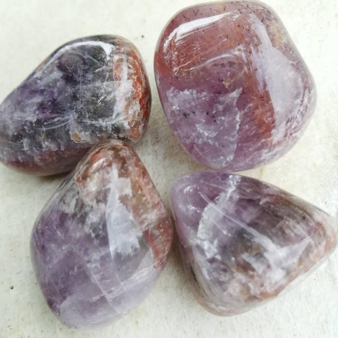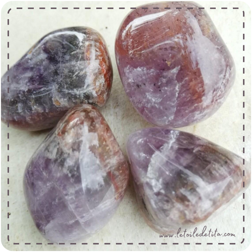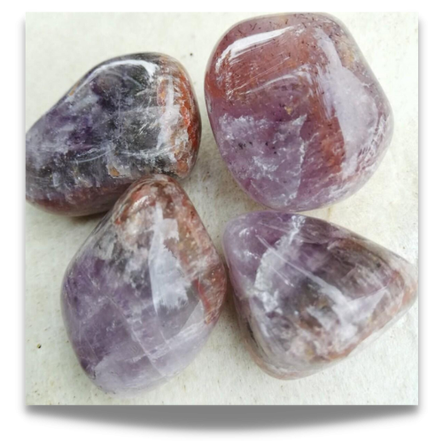 Super seven aussi appelée pierre de lumière, pierre sacrée (ou 7 chakras), pierre mélodieuse, pierre des voyants et médiums, la cacochynite ou la cacoxenite du Brésil.