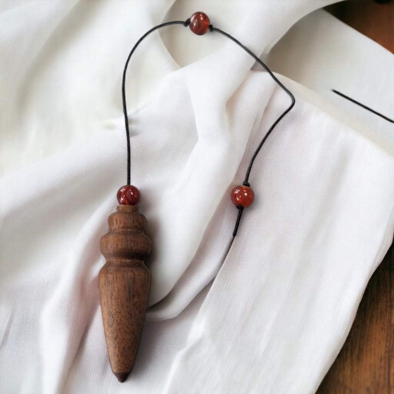 Le pendule de radiesthésie artisanal en noyer d'Auvergne est une pièce d'exception pour les passionnés de divination et de spiritualité. Confectionné à la main avec minutie, il est sculpté dans le bois de noyer, réputé pour ses qualités vibratoires et énergétiques.