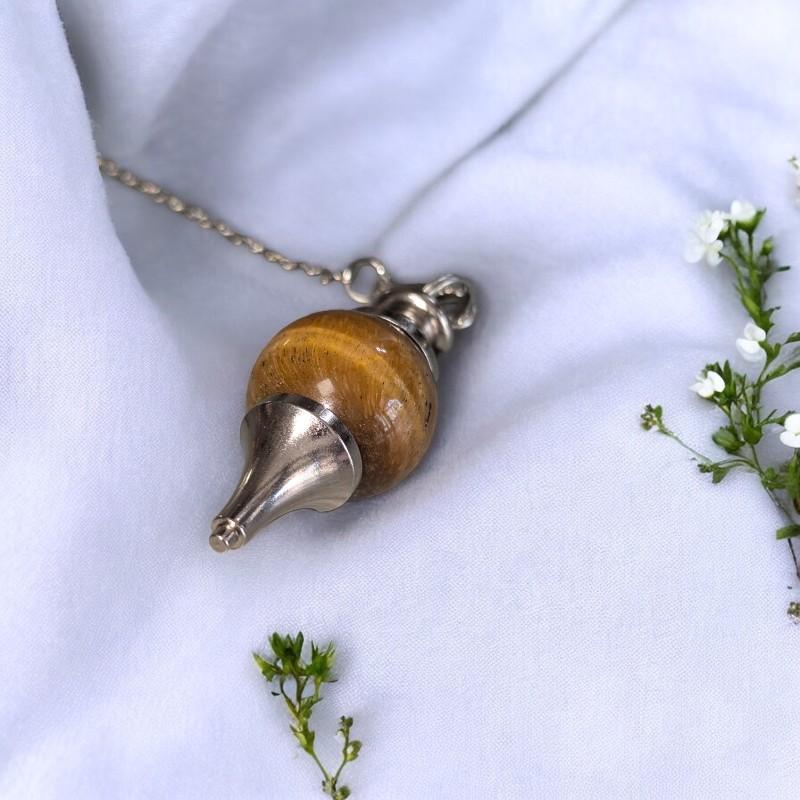 Un pendule de radiesthésie en œil de tigre est un outil puissant pour l'exploration énergétique et spirituelle. L'œil de tigre est une pierre protectrice et stimulante, connue pour équilibrer les énergies et renforcer la confiance en soi. Ce pendule est idéal pour la divination, la guérison et l'harmonisation des chakras. Il aide à clarifier les pensées, à prendre des décisions éclairées et à attirer la chance. Utilisé en méditation, il favorise la concentration et l'intuition.
