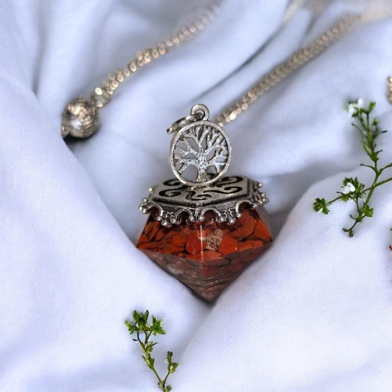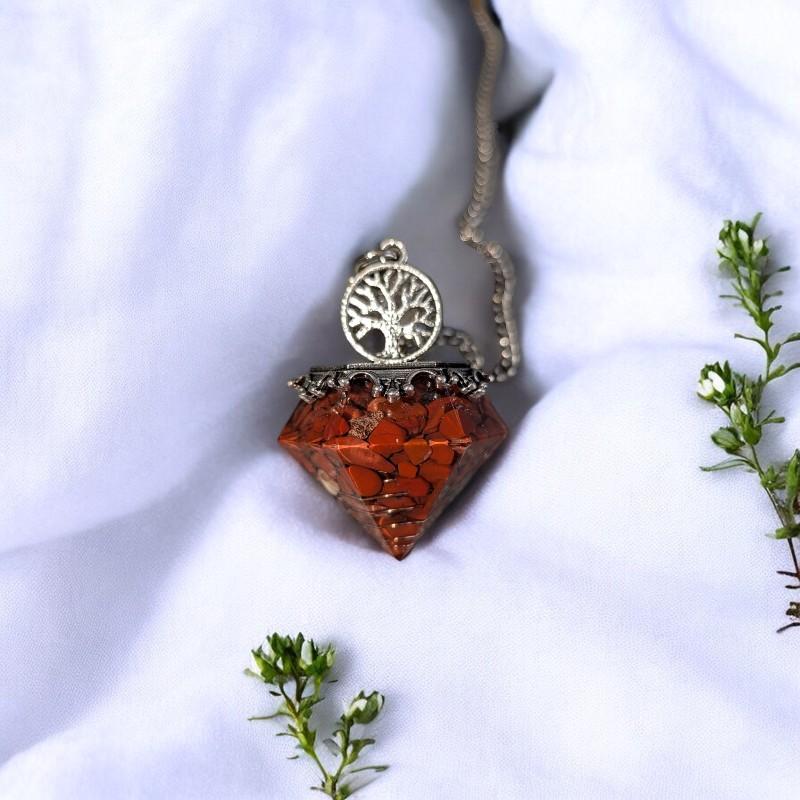 Un pendule de radiesthésie en orgonite et jaspe rouge est un outil puissant pour l'exploration énergétique et spirituelle. L'orgonite, composée de résine, de métaux et de cristaux, équilibre les énergies environnantes. Le jaspe rouge, pierre de vitalité et de courage, renforce la connexion avec la terre et stimule l'énergie vitale. Ensemble, ils forment un pendule idéal pour la divination, la guérison et la méditation. Utilisé correctement, il peut aider à clarifier les doutes, équilibrer les chakras et améliorer le bien-être général, faisant de ce pendule un allié précieux dans votre pratique spirituelle.