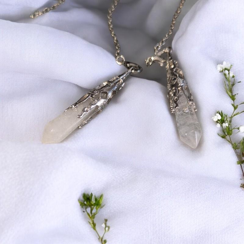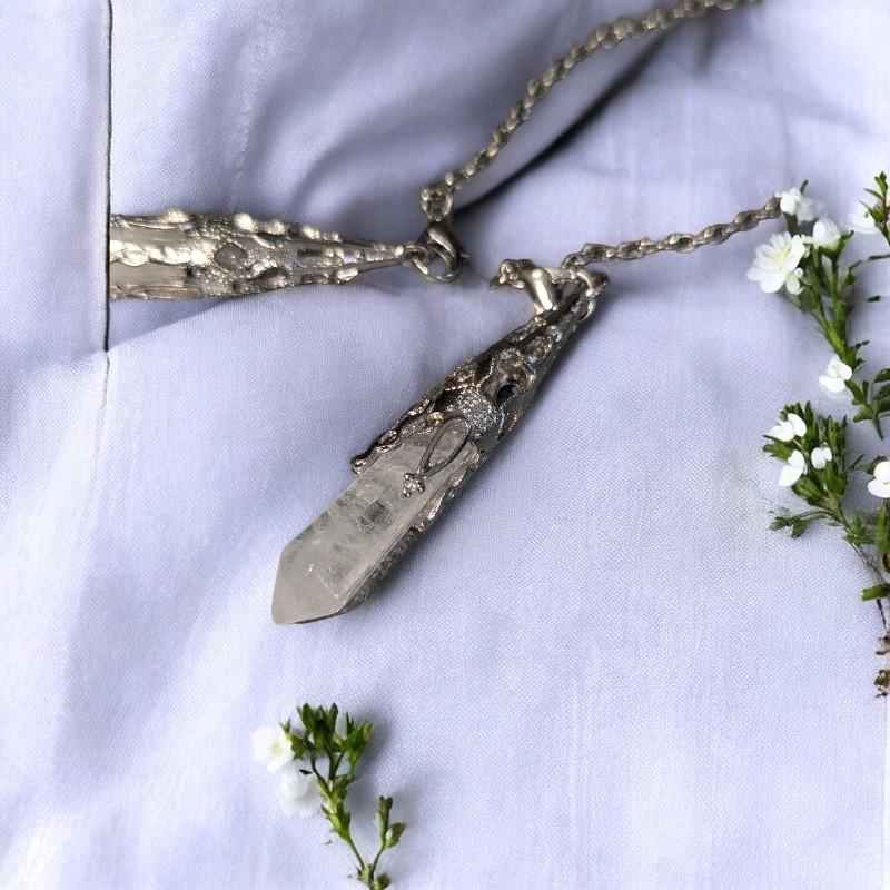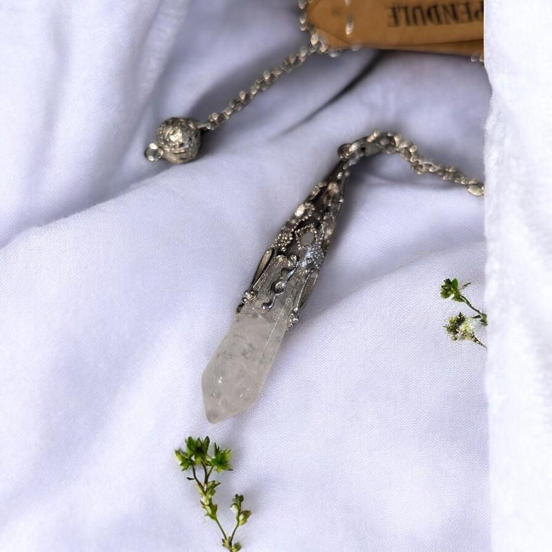 Le pendule de radiesthésie en cristal de roche est un outil divinatoire d'une pureté et d'une clarté exceptionnelles, très prisé pour ses propriétés amplificatrices d'énergie. Le cristal de roche, connu pour sa capacité à clarifier les pensées et à renforcer l'intuition, fait de ce pendule un compagnon idéal pour la divination et la méditation.