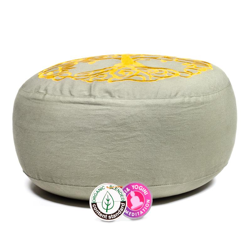 Coussin de méditation Yogi & Yogini avec intérieur et extérieur en coton 100% biologique et garni de cosses de sarrasin naturelle. 6% du coussin de méditation total est organique. Certifié biologique (OCS mélangé). (*)