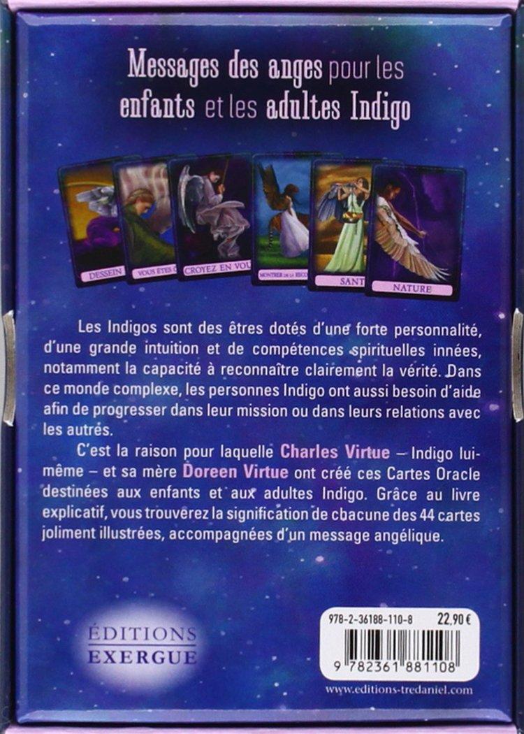 Les Indigos sont des êtres dotés d'une forte personnalité, d'une grande intuition et de compétences spirituelles innées, notamment la capacité à reconnaître clairement la vérité. Dans ce monde complexe, les personnes Indigo ont aussi besoin d'aide afin de progresser dans leur mission ou dans leurs relations avec les autres. C'est la raison pour laquelle Charles Virtue Indigo lui-même et sa mère Doreen Virtue ont créé ces Cartes Oracle destinées aux enfants et aux adultes Indigo. Grâce au livre explicatif, vous trouverez la signification de chacune des 44 cartes joliment illustrées, accompagnées d'un message angélique.