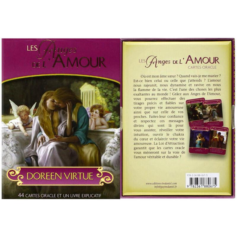 Où est mon âme sœur ?, Quand vais-je me marier ? ou Est-ce bien celui/celle que j’attends ? … Grâce aux Anges de l’Amour de Doreen Virtue, vous pourrez effectuer des tirages précis et fiables sur votre propre vie amoureuse ainsi que sur celle de vos proches. Faites confiance et respectez ces messages divins qui sont là pour vous assister. La Loi d’Attraction garantit que vous sélectionnerez toujours les bonnes cartes pour répondre avec précision à toutes vos questions. Chaque carte porte un message destiné à réveiller votre intuition, ouvrir le chakra du cœur et éclairer votre vie amoureuse. Le livret d’accompagnement répertorie les significations générales de chacune des Cartes oracle des Anges de l’Amour pour effectuer des lectures précises, pour vous-même et vos êtres chers. Un auteur de référence en la personne de Doreen Virtue.